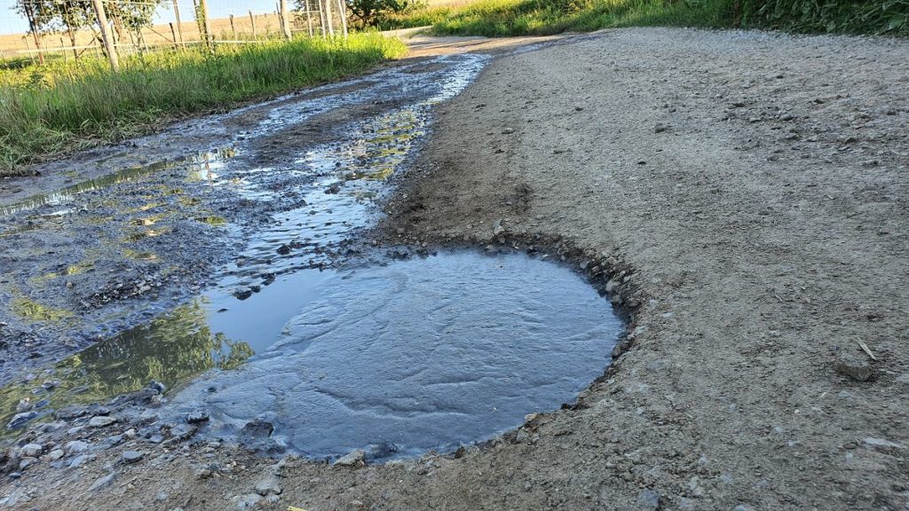 Ako sme sa presvedčili priamo na mieste, v dedine bolo skutočne cítiť nepríjemný zápach, zdrojom ktorého bol s najväčšou pravdepodobnosťou prúd smradľavej tekutiny. Zrejme šlo o močovku, ktorá v čase našej podvečernej návštevy vytekala od oploteného areálu farmy. Odtiaľ zhruba sto metrov tiekla po verejne prístupnej komunikácii a následne stekala do ďalšieho oploteného poľnohospodárskeho areálu.