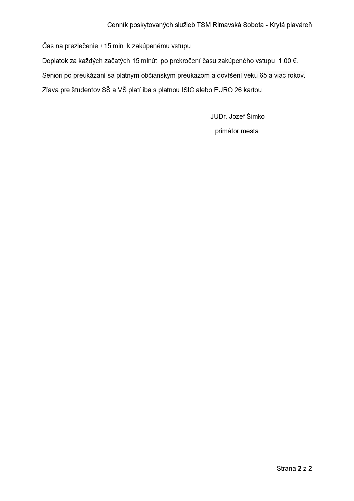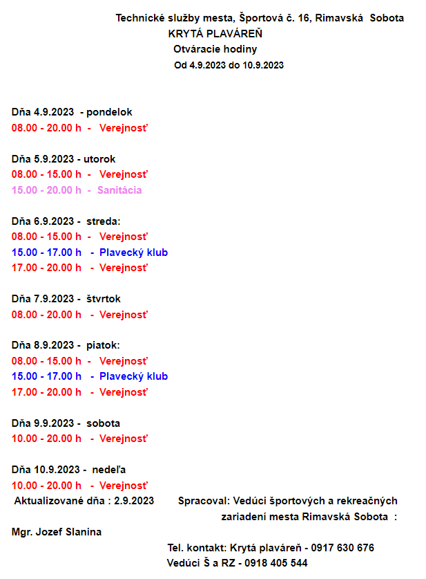 Cenník a otváracie hodiny krytej plavárne v Rimavskej Sobote: