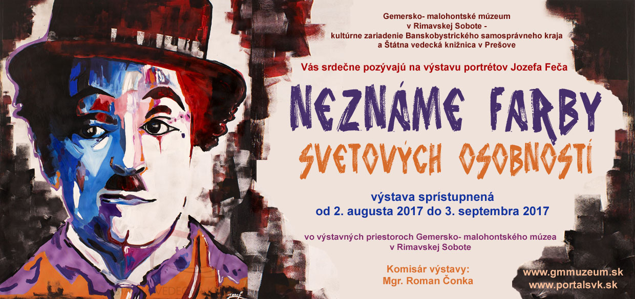 Od 2. augusta je v Gemersko-malohontskom múzeu v Rimavskej Sobote sprístupnená nová výstava pod názvom Neznáme farby svetových osobností, ktorá vám predstaví 13 svetových osobností s rómskymi koreňmi, a to prostredníctvom nadrozmerných portrétov namaľovaných technikami pop art, street art a stencil art. Výstava potrvá do 3. septembra.