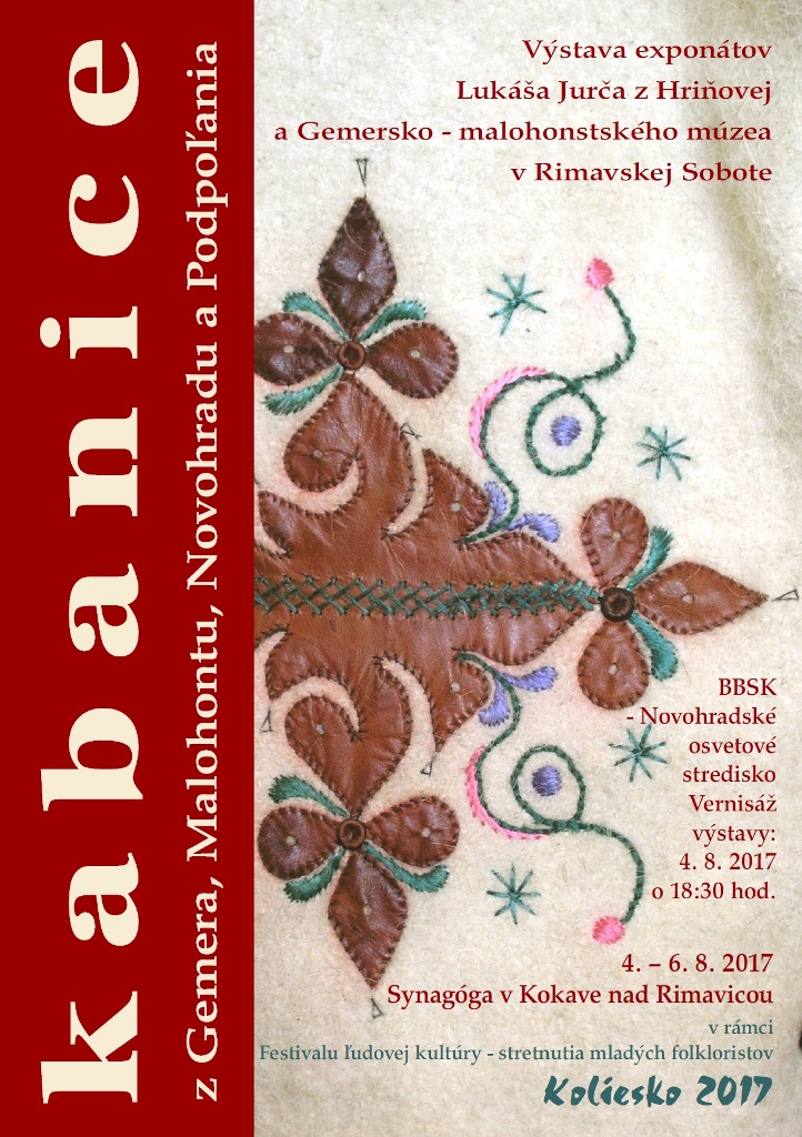 Počas folklórneho festivalu Koliesko v Kokave nad Rimavicou môžete v rámci sprievodných programov navštíviť aj dve výstavy. Jedna z nich predstaví návštevníkom synagógy kabanice ako súčasť mužského tradičného odevu z rôznych lokalít stredoslovenských regiónov. Na druhej výstave v kultúrnom dome spoznáte tradičný odev Novohradu, konkrétne z obcí Lešť, Turie Pole, Veľký Lom, Horný a Dolný Tisovník, Ábelová, Polichno, Nedelište a Madačka.