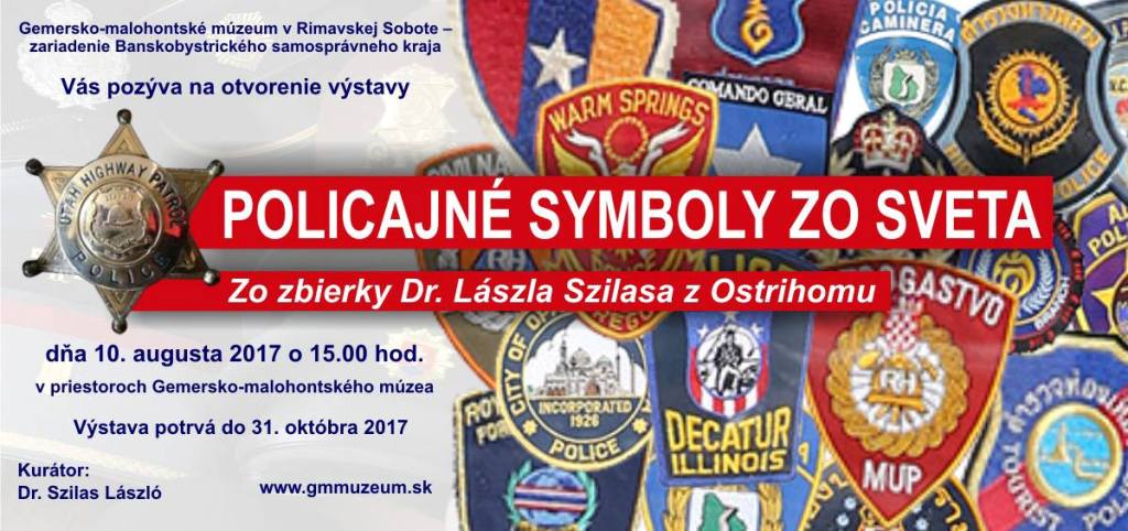 Gemersko-malohontské múzeum v Rimavskej Sobote otvára vo štvrtok 10. augusta ďalšiu výstavu Policajné symboly zo sveta. Jej autorom je súkromný zberateľ Lászlo Szilas z Ostrihomu, ktorý sa tomuto koníčku venuje už 25 rokov. Vo svojej zbierke vlastní nášivky na rukávy, odznaky, čiapky, ocenenia, medaily i celé uniformy zo 127 štátov sveta, ktoré sa viažu k štátnej polícii, colnej správe, pohraničnej polícii a obecnej polícii. Výstava potrvá do konca októbra.