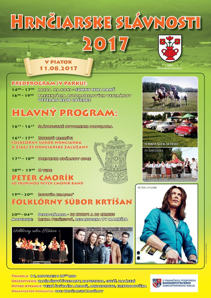 Obec Hrnčiarske Zalužany oslávi svoj deň Hrnčiarskymi slávnosťami (11.08.), počas ktorých si prídu na svoje milovníci koní aj automobilových veteránov. O hudobnú časť programu sa postarajú folklórne súbory Hrnčiarka a Krtíšan, ktoré doplní svojim koncertom Peter Cmorík s kapelou. Samozrejmosťou sú rôzne atrakcie, dobré jedlo a disko zábava až do rána.