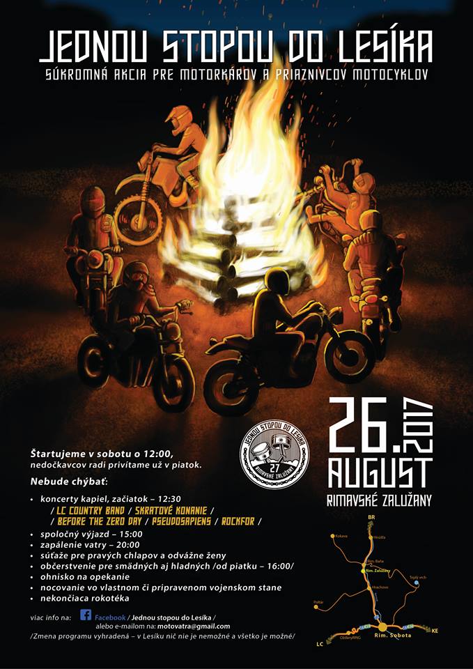 Pri Rimavských Zalužanoch pokračuje akcia pre motorkárov a priaznivcov motocyklov spojený so zapálením vatry. Program "Jednou stopou do lesíka" začína 26. augusta o 12:30 hod.