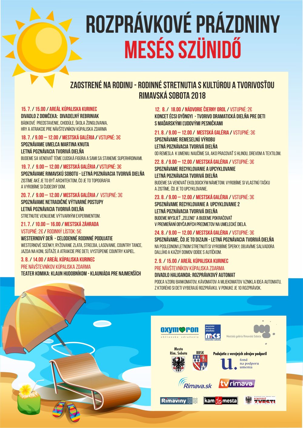 Organizátorom podujatí je OZ Oxymoron v spolupráci s MsKS. Program spája dva projekty: Rozprávkové prázdniny, ktoré podporilo mesto Rimavská Sobota a projekt Zaostrené na rodinu, ktorý organizátori realizujú s podporou BBSK.
