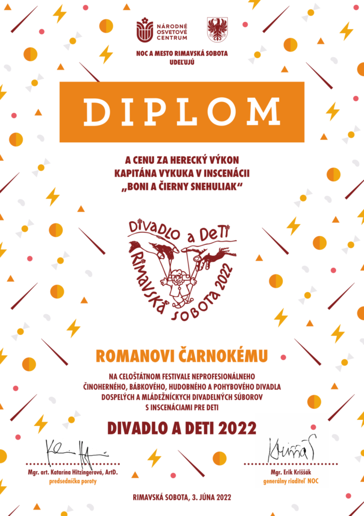 RIMAVSKÁ SOBOTA - Koncom minulého týždňa sa v Rimavskej Sobote zišli divadelníci z celého Slovenska s inscenáciami adresovanými detskému divákovi. V dňoch 2. – 3. júna sa v našom meste konal po dvojročnej covidovej prestávke festival DIVADLO A DETI. Stretlo sa šesť neprofesionálnych dospelých i mládežníckych divadelných kolektívov z rôznych kútov Slovenska.