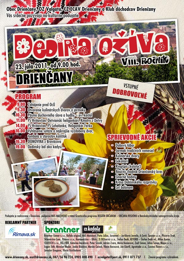 Podujatie organizuje Obec Drienčany, OZ Valgata, CZ ECAV Drienčany a Klub dôchodcov Drienčany. Akcia Dedina ožíva  je realizovaná s finančnou podporou MAS Malohont v rámci grantového programu Región občanom – občania regiónu a Banskobystrického samosprávneho kraja.