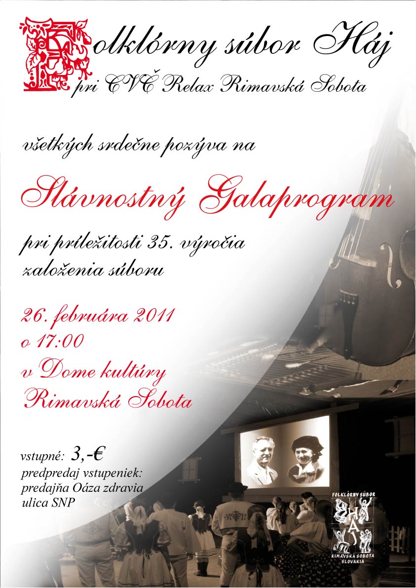 Slávnostný galaprogram venovaný oslavám 35. výročia svojho založenia pripravil na sobotu, 26. februára, rimavskosobotský folklórny súbor Háj. Predstaví sa v Dome kultúry v Rimavskej Sobote, o 17.00 hod.