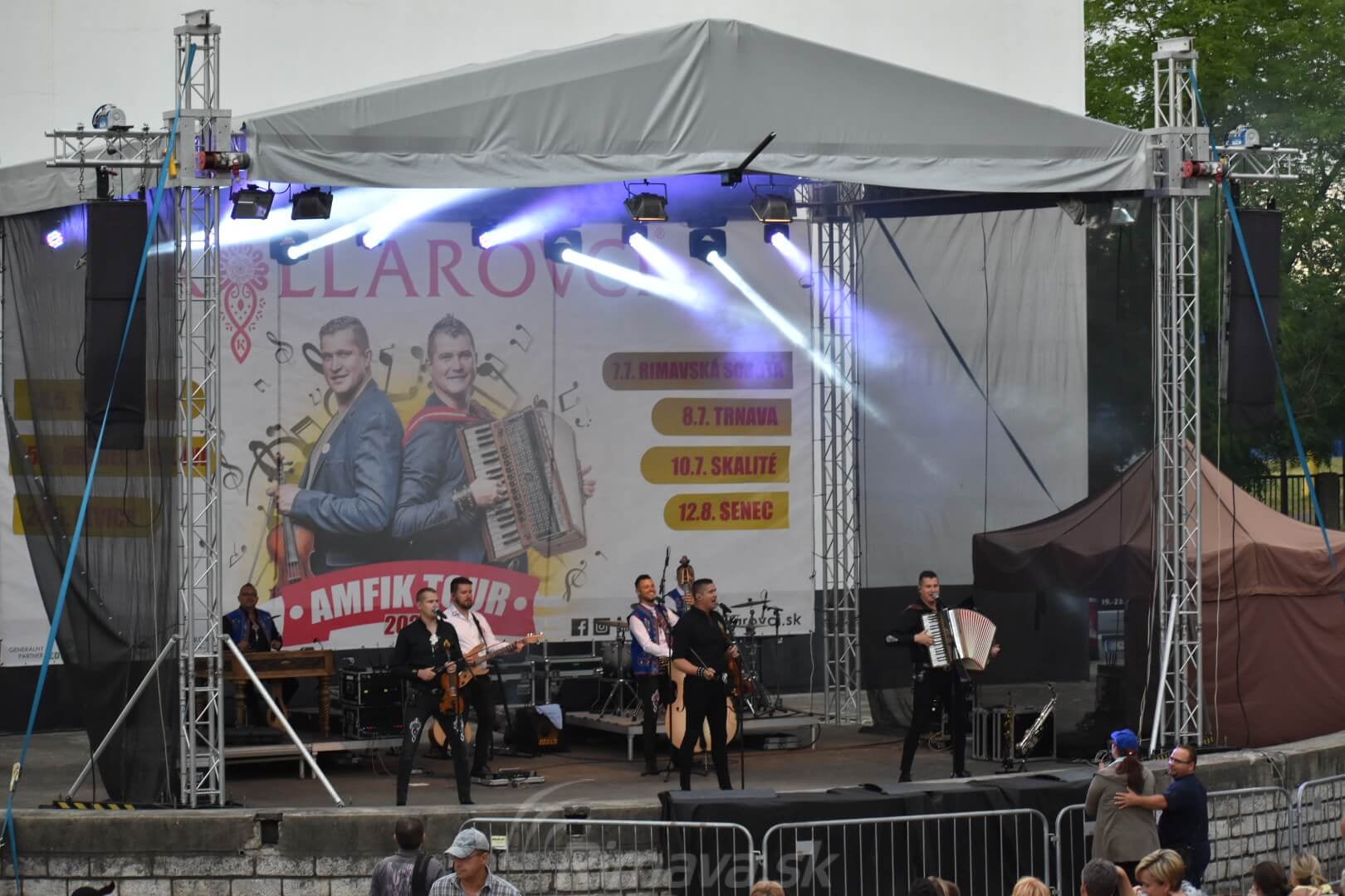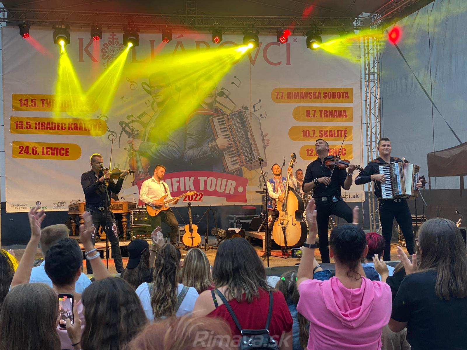 RIMAVSKÁ SOBOTA - Včerajší večer (7. 7.) v Rimavskej Sobote patril hudobnej skupine Kollárovci. O 19-tej hodine vystúpili na mestskom amfiteátri. Rimavská Sobota bola pre nich piatou zástavkou v rámci turné po Slovensku, ktoré odštartovali začiatkom tohto mesiaca.