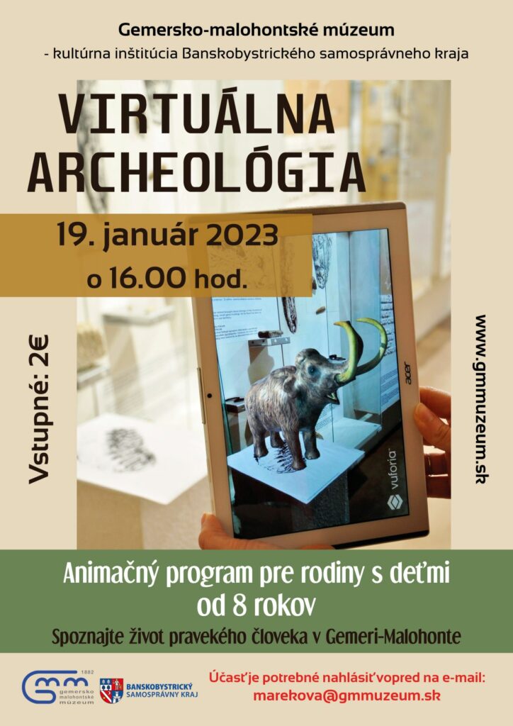 RIMAVSKÁ SOBOTA – Gemersko-malohontské múzeum pripravuje pre rodiny s deťmi animačný program pod názvom Virtuálna archeológia. Program je zameraný na život pravekého človeka v Gemeri-Malohonte. Uskutoční sa 19. januára 2023 (štvrtok) o 16.00 hod. Určený je rodinám s deťmi od 8 rokov. Vstupné je 2 eurá.