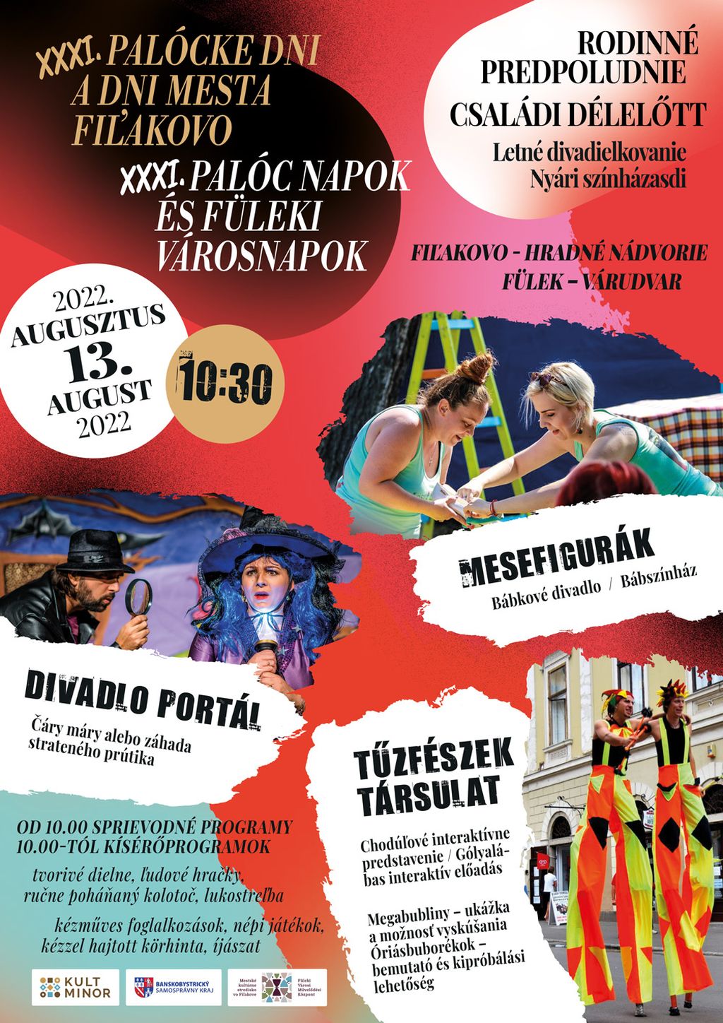 "Po minuloročnom úspechu prechádzky mestom sa tento rok opäť vyberieme po stopách historických miest mesta. Témou prechádzky bude fiľakovské gymnázium, ktoré oslavuje 50. výročie slovenskej a 70. výročie maďarskej gymnaziálnej výučby vo Fiľakove. Interaktívnu prechádzku mestom bude sprevádzať lučenecká skupina Traditional Dixie Stompers, a to na trase Koháryho námestie – Mestské vlastivedné múzeum – Gymnázium, ktorá vedie až po hrad. Trojdňový festival ukončíme operetným predstavením divadla Rátonyi Róbert Színház pod názvom Sybill. Počas prestávky futbalového zápasu a operetného predstavenia sa uskutočnia slávnostné odovzdávania cien mesta," povedala Andrea Illés Kósik, riaditeľka Mestského kultúrneho strediska Fiľakovo - Városi Művelődési Központ Fülek.