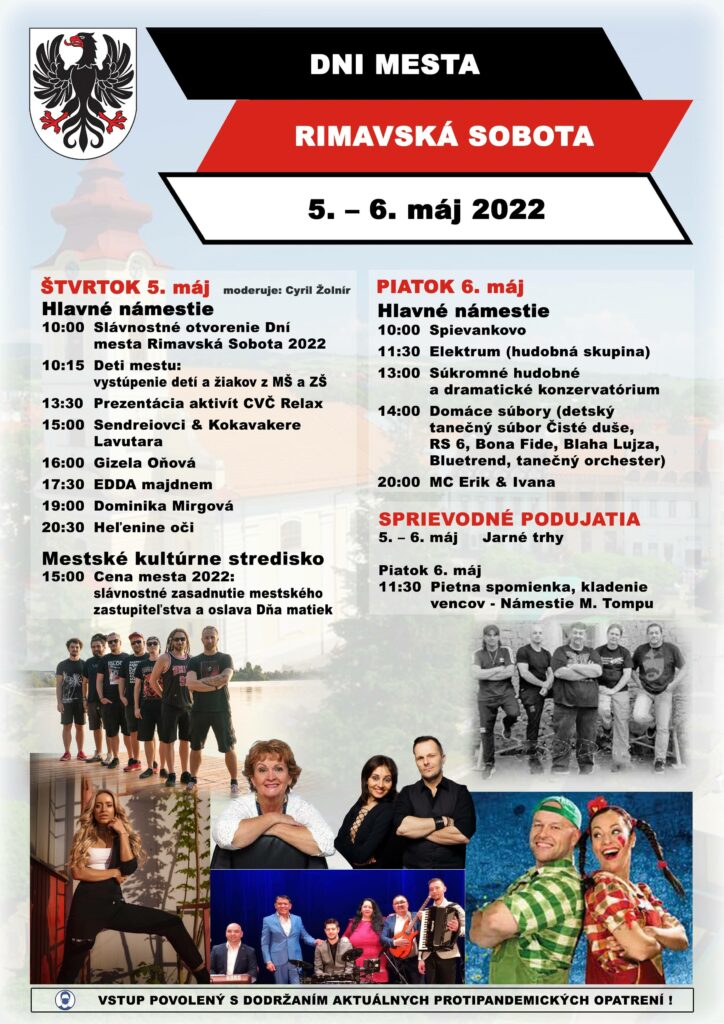 RIMAVSKÁ SOBOTA - Už vo štvrtok (5. mája) to vypukne. Slávnostná atmosféra sa bude niesť ulicami Rimavskej Soboty už o pár dní a naozaj sa môžete tešiť na bohatý program pre všetky vekové kategórie.