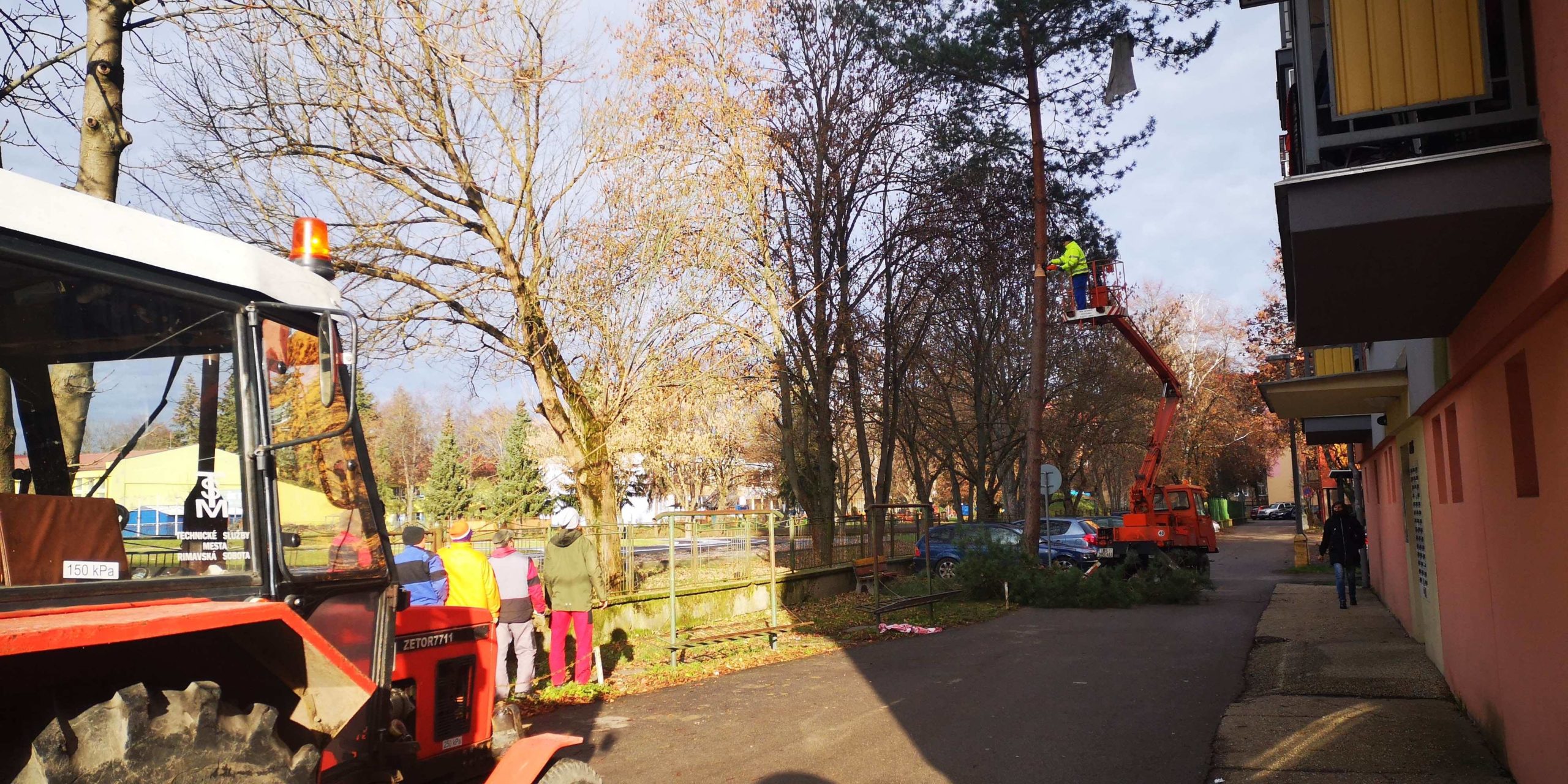 -Pracovníci TSM pokračujú v pílení stromov na sídliskách v R. Sobote. Tento týždeň pracovali aj na Rožňavskej ulici. V rovnaký deň maľovali aj vodorovné dopravné značenie na neďalekom dopravnom ihrisku.