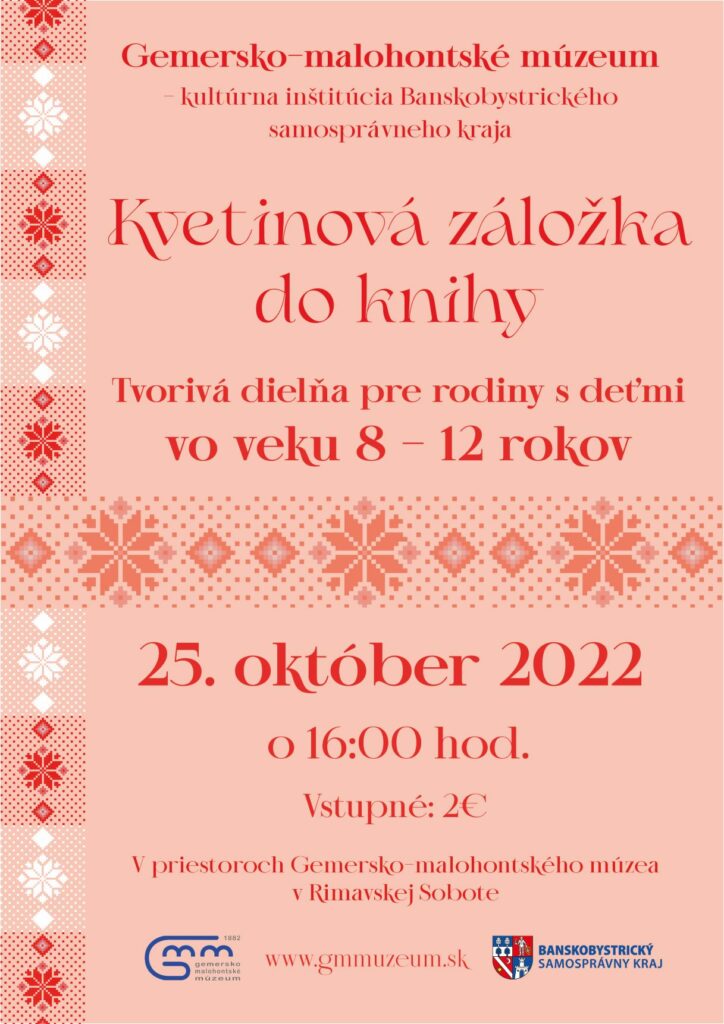 "Témou tvorivej dielne je ľudový ornament, ktorý nachádzame v ľudovej výšivke, rezbárskom umení i  maľbách na skle. Počas tvorivej dielne si rodičia s deťmi vyrobia záložku do knihy inšpirovanú rastlinným ornamentom," informovala PR-referentka z GMM Martina Oštrom Mareková.
