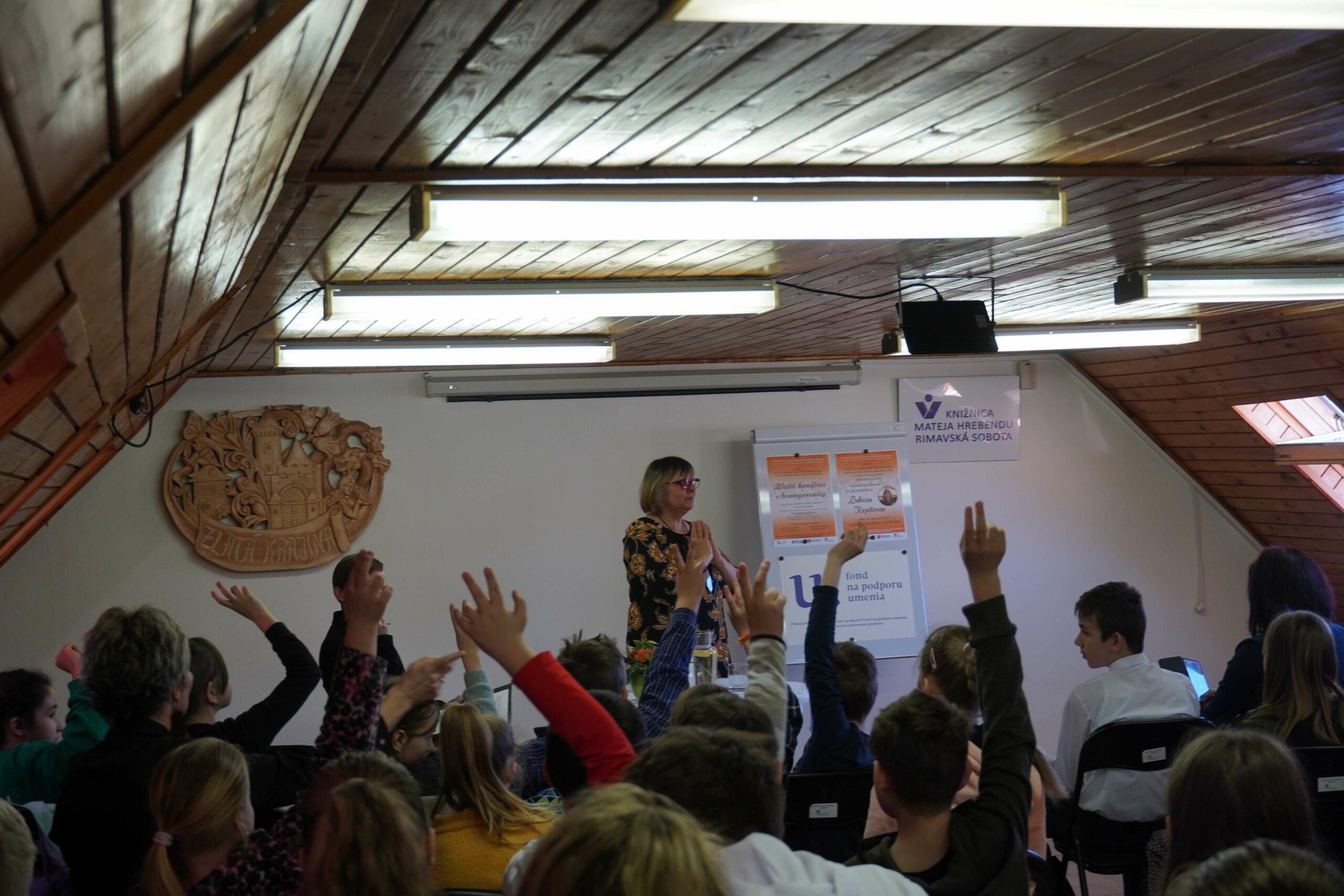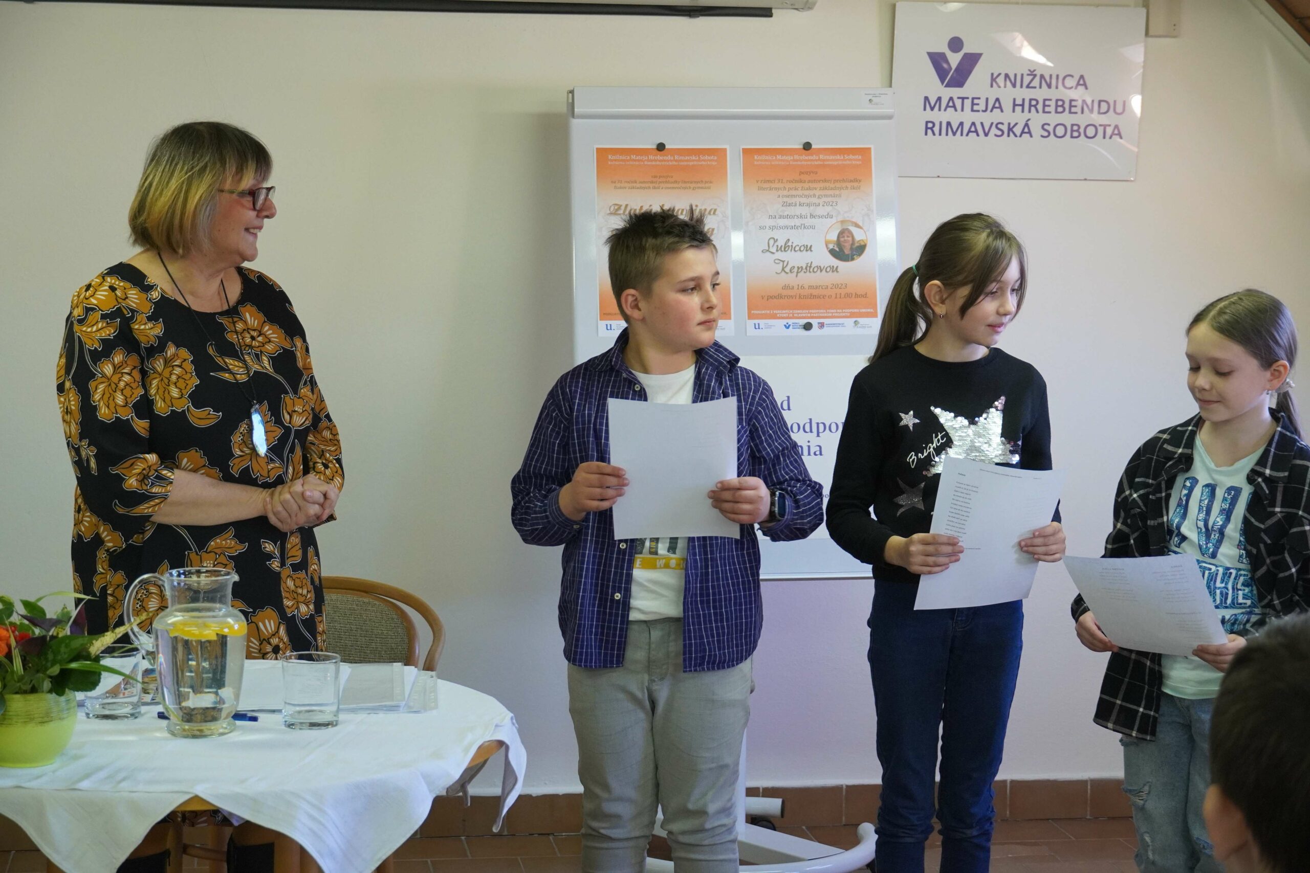 Literárne práce nádejných spisovateľov hodnotila Katalin Juhasz a Ľubica Kepštová. Obľúbená spisovateľka navštívila Rimavskú Sobotu už tretíkrát a vždy sa k nám rada vracia. "Hodnotenie detských prác je vždy veľmi radostné, pretože často sa hovorí ako tie deti málo čítajú, či sa vedia ešte pekne vyjadrovať, ale na týchto prácach vidno, že áno. Ide určite aj o talentované deti, ale aj o dobrých pedagógov, ktorí dokážu v tých deťoch vzbudiť tieto pocity a ambície, pretože už u tých maličkých detí vidno, že je tam nejaký presah z bežného rozprávania , že vedia nájsť nejakú zaujímavú vec, ktorú dokážu do toho príbehu, alebo básničky pretaviť," uviedla Kepštová.