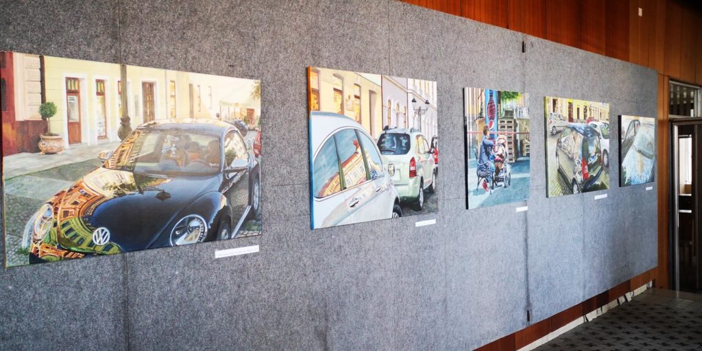 Potom podľa jeho slov nasledovali obrazy, ktoré sa odzrkadľovali v mláke po daždi a na ploche výkladov v uliciach mesta. Boli to budovy bývalého Župného domu, Hotela Tatra. „A už som bol len na krok od toho, aby som začal maľovať obrazy, ktoré sa odzrkadľujú na kapotách a sklách aut, ktoré boli zaparkované na Hlavnom námestí a v iných uliciach mesta. Úplne poslednou tematickou myšlienkou zobrazovania života nášho mesta boli tie maľby, kde sa už vyskytovali aj prechádzajúci sa ľudia na námestí a v uliciach,“ podotkol.