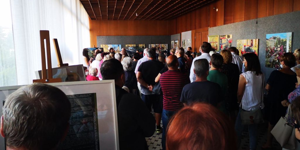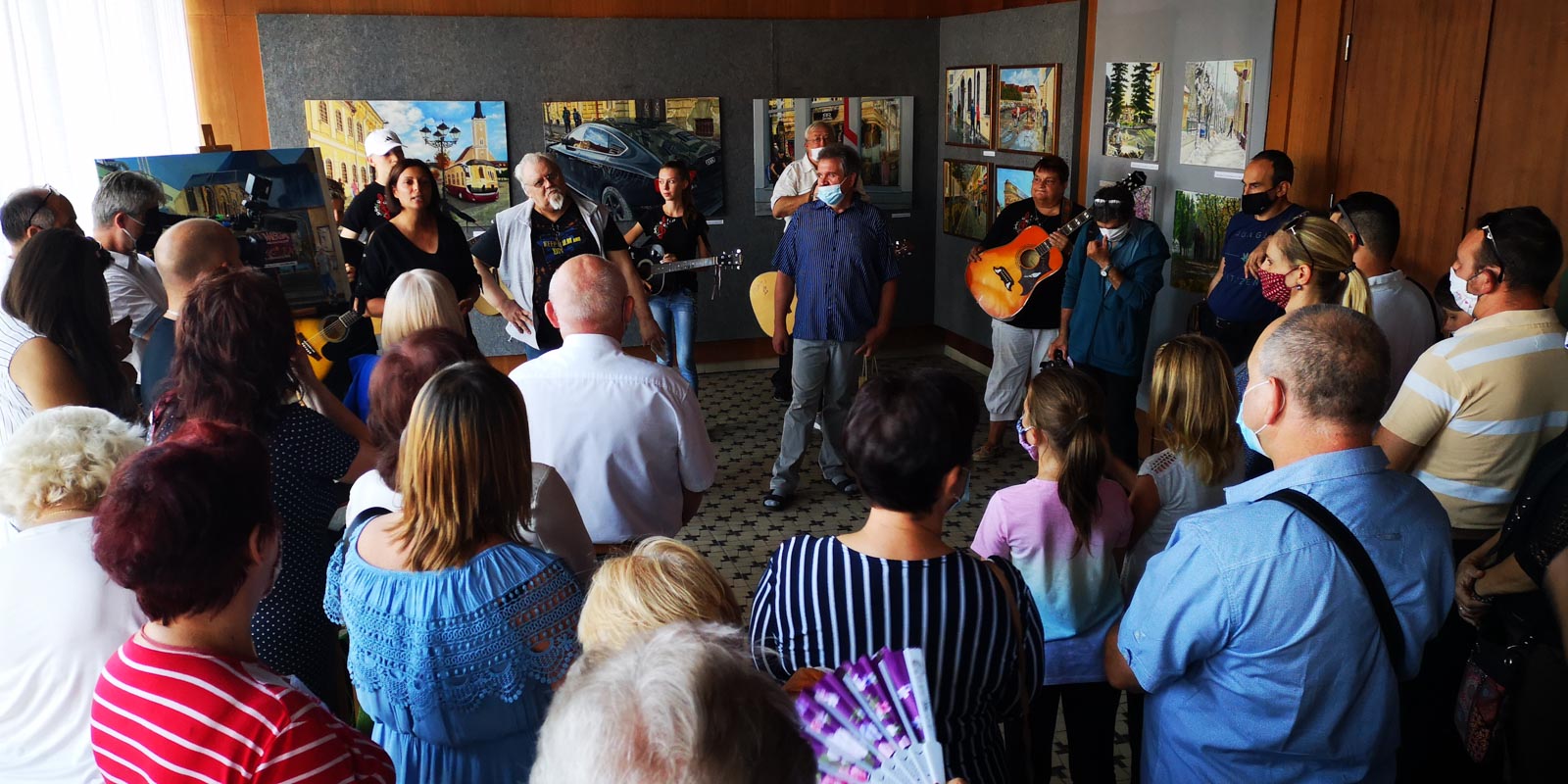 Ako ďalej počas vernisáže povedala Silvia Habánová, ktorá ju prednedávnom otvárala, táto výstava vznikla pri príležitosti životného jubilea k 60-tym narodeninám Štefana Hangácsiho. „Je to jeho prvá úplne samostatná výstava a som presvedčená, že nie posledná,“ priblížila s tým, že autor žije v meste už viac ako 30 rokov, zotrval tu kvôli láske, kvôli svojej manželke a toto krásne mestečko si veľmi zamiloval, až sa stalo jeho domovom. Vernisáž sa konala v piatok 4. septembra v galérii Ganevia v priestoroch Mestského kultúrneho strediska. Potrvá do 14. októbra.