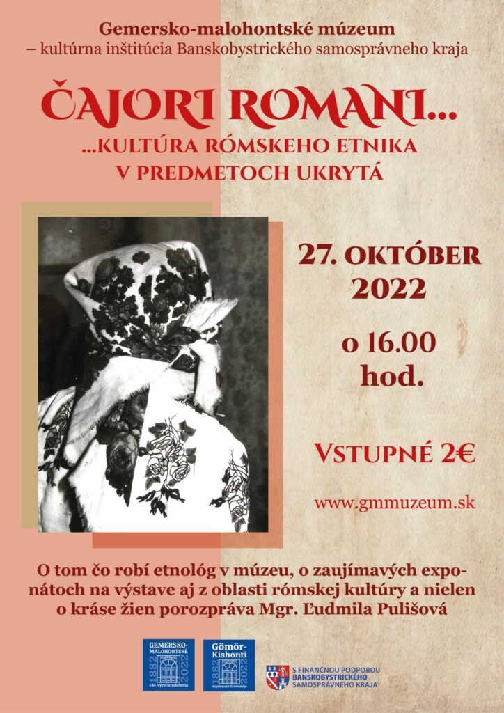 RIMAVSKÁ SOBOTA - Už tento štvrtok (27. 10.) sa v priestoroch Gemersko-malohontského múzea (GMM) uskutoční podujatie „Čajori romani... Kultúra rómskeho etnika v predmetoch ukrytá“, ktoré nadväzuje k výstave „Najnovšie a zreštaurované zbierky Gemersko-malohontského múzea“.