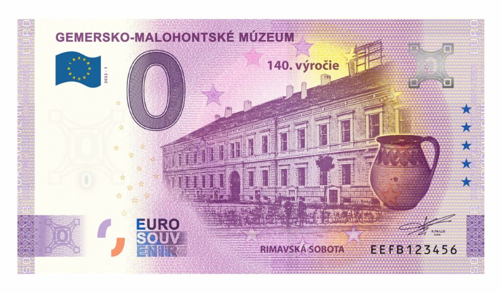 RIMAVSKÁ SOBOTA - Pri príležitosti 140. výročia založenia Gemersko-malohontského múzea, vydalo múzeum v spolupráci so spoločnosťou Nunofia s. r. o., ktorá je výhradným držiteľom licencie Euro Souvenir pre územie Slovenskej republiky, nulovú eurobankovku (0 Euro Souvenir).