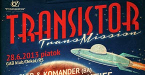 Už tento piatok – 28. júna odštartuje Transistor podujatie v GAB klube. V hudobnej sekcii vystúpia najvýznamnejší predstavitelia elektronickej tanečnej hudby ako napríklad DJ Gabanna, MC Aktiff alebo MC Gleb a Komander, ktorí dokážu výborne rozprúdiť hviezdnu zábavu. Priestory budú spestrené výstavou troch talentovaných fotografov Mili Vanilli - RS, Henrieta Stepanovsky – USA / RS, Richard Bolčo –RS, ktorí vytvorili niektoré práce špeciálne na tému vesmír.