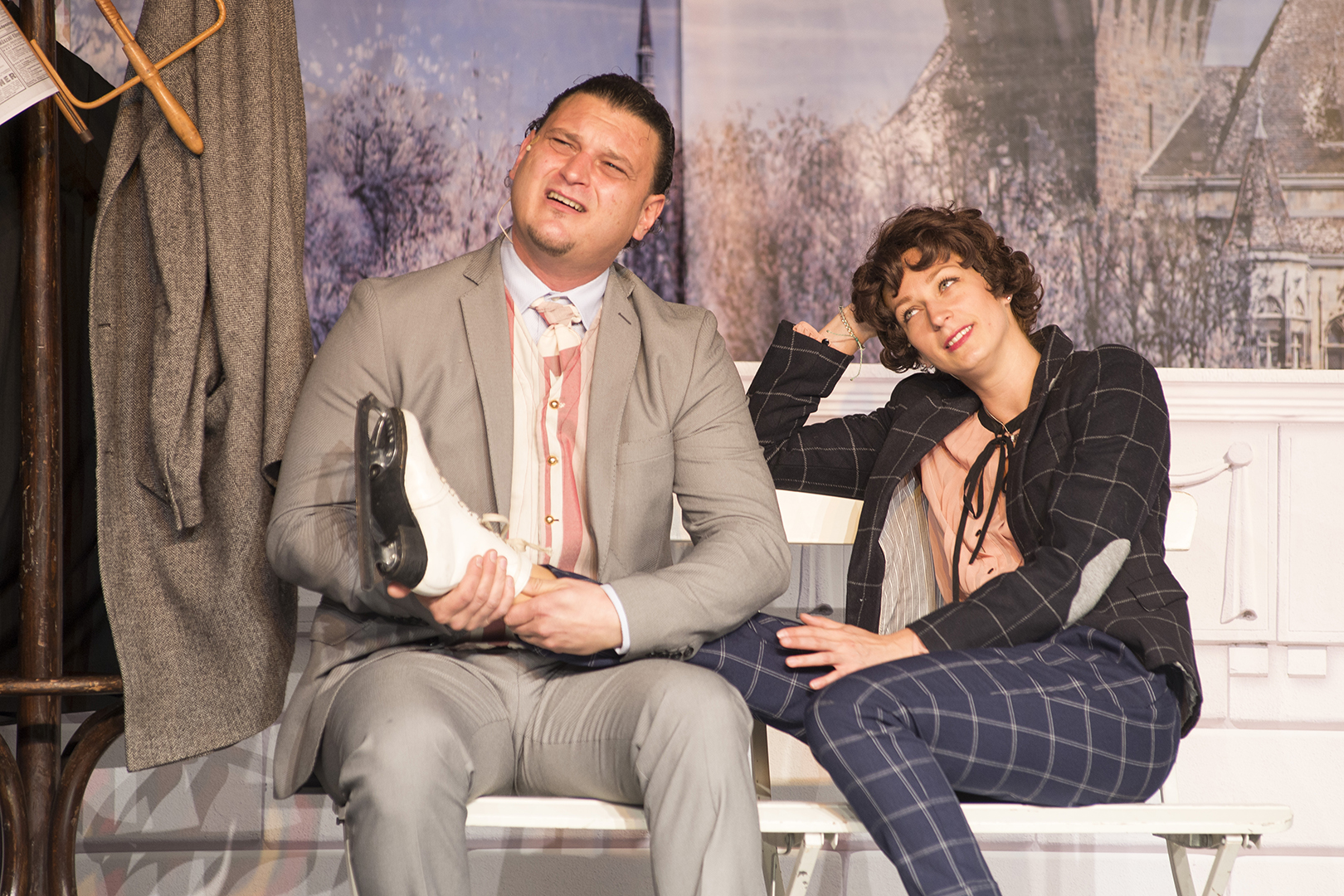 Veselohra sa odohráva v dvoch prostrediach, na budapeštianskom klzisku a v ubytovacom zariadení na Mátraszéplaku.