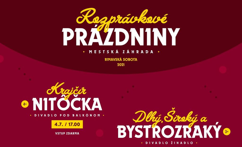 ROZPRÁVKOVÉ PRÁZDNINY 2021 je projekt pozostávajúci zo sledu nedeľných detských predstavení v príjemnom prostredí v Mestskej záhrade v tieni stromov. Predstavenia sú pre najmenších divákov a ich rodičov sprístupnené zdarma, rozložené sú do obdobia letných prázdnin. „Vybrali sme interpretov a divadlá, ktoré sme ešte nemali možnosť v Rimavskej Sobote vidieť a ktoré nás zaujali tematikou ako aj nenáročnosťou na priestor,“ vysvetlilo MsKS v Rimavskej Sobote.