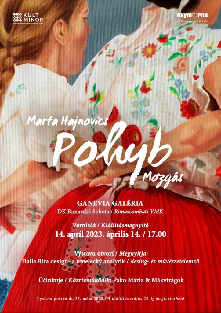 Slávnostne otvoria výstavu Marty Hajnovics: Pohyb v Galérii Ganevia. Vystavujúca výtvarníčka je rodáčkou z Rimavskej Soboty, tu žije a tvorí. Je členkou Spolku maďarských tvorivých umelcov na Slovensku a svojimi olejomaľbami sa predstavila už v rôznych mestách Slovenska a Maďarska, ale aj v Rakúsku, Francúzsku a Španielsku.