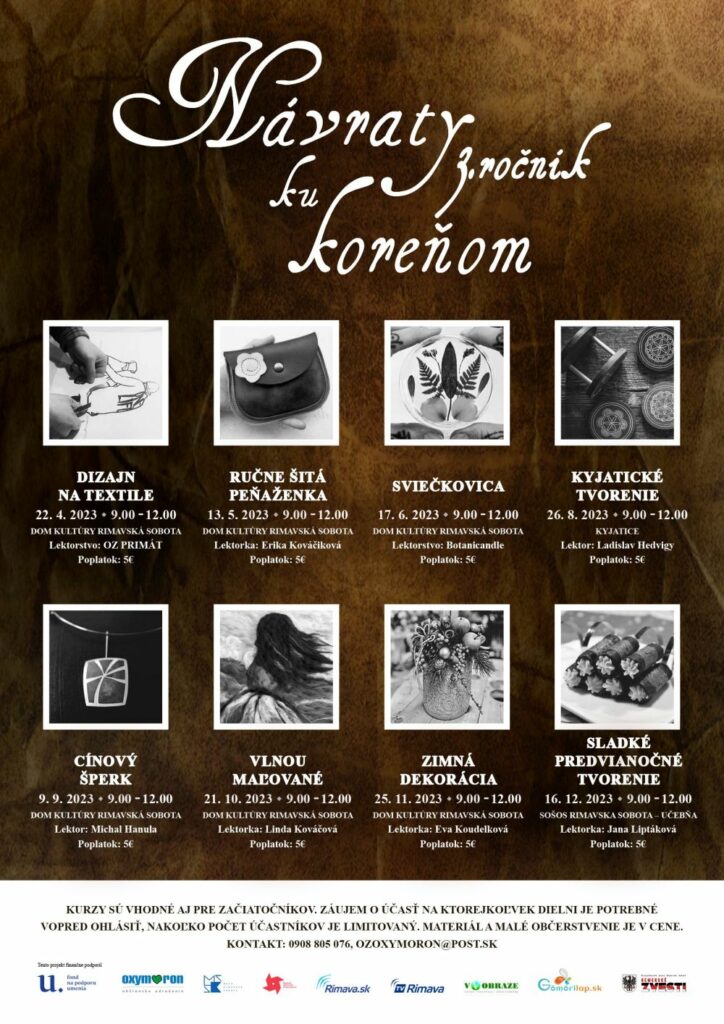 Prvou z ôsmych tvorivých aktivít v rámci tretieho ročníka projektu NÁVRATY KU KOREŇOM bude v sobotu (22. 4.) Dizajn na textile. V čase od 9.00 – 12.00 hod. si účastníci v Dome kultúry vytvoria pomocou techniky linorytu a jeho odtlačkov svoj vlastný originálny dizajnový kúsok. Lektorstvo zastrešuje OZ PRIMÁT. Záujem o účasť je potrebné vopred ohlásiť. Aktivita je vhodná aj pre začiatočníkov.