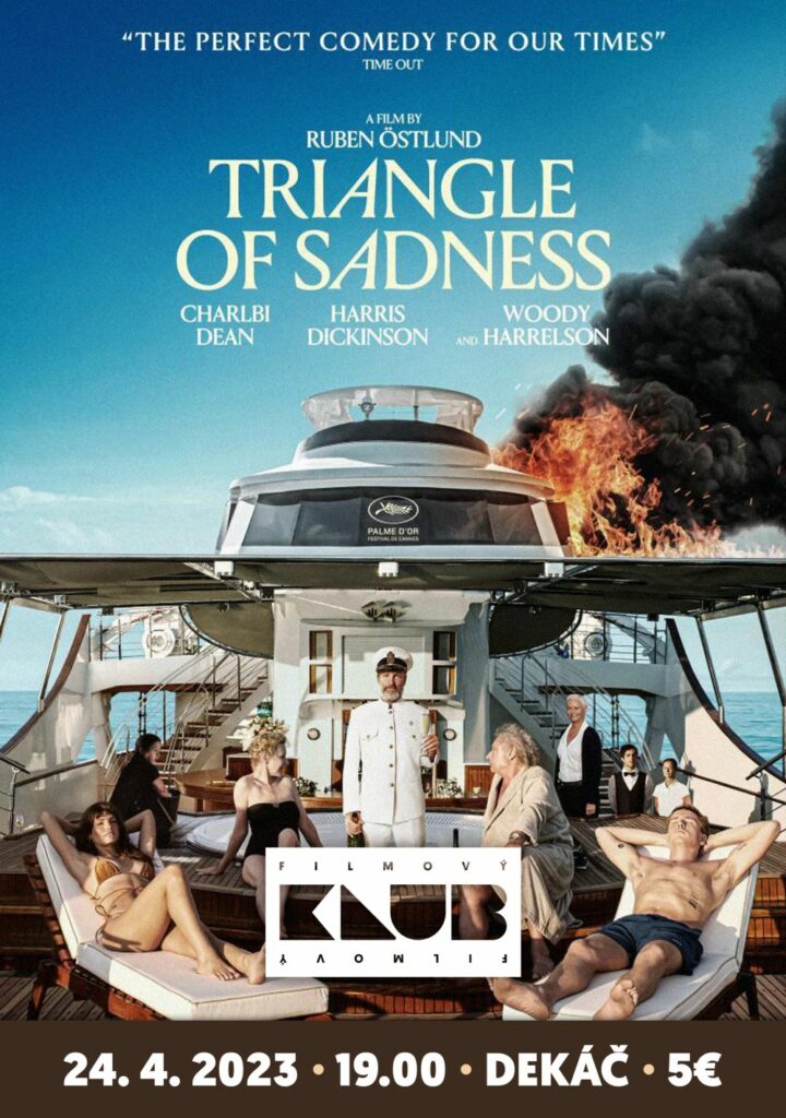 MsKS a Kino Orbis opäť otvorilo filmový klub, kde bude jeden pondelok v mesiaci ponúkať divákovi tie najväčšie filmové lahôdky. Štvrtý aprílový pondelok tak budeme môcť v bábkovej sále Domu kultúry uvidieť drámu a komédiu zároveň, s názvom TROJUHOLNÍK SMÚTKU. Celosvetová premiéra filmu bola 5. 5. 2022 na filmovom festivale v Cannes, kde film zožal 8-minútový potlesk v stoji a získal Zlatú palmu.