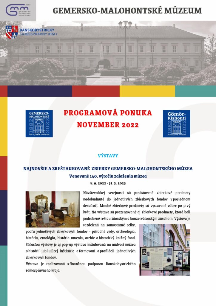Programová ponuka na november v GMM v Rimavskej Sobote: