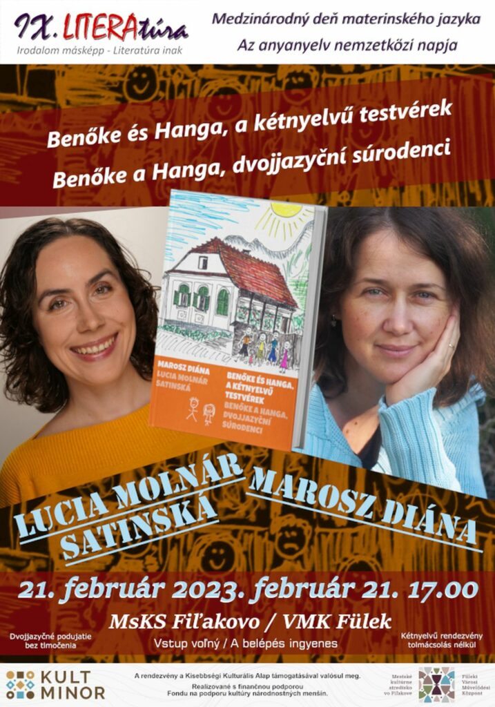 Benőke a Hanga, dvojjazyční súrodenci – Benőke és Hanga, a kétnyelvű testvérek je rozprávkový román, ktorý sa teraz predstaví aj vo Fiľakove. Autorka knihy Diána Marosz, blogerka, spisovateľka a hudobná pedagogička, pochádza z Maďarska. Vydala sa do Žiliny za Slováka, s ktorým sa snažili vychovávať svoje tri deti dvojjazyčne. Na Diánu pripadla úloha, aby si deti v slovenskom prostredí osvojili aj maďarčinu na úrovni materinského jazyka, tiež prirodzene nadviazali vzťah aj s maďarskou kultúrou. Veľakrát to ale nemá hladký priebeh u detí. Nie z dôvodu osvojovania si dvoch jazykov, ale viac kvôli reakciám prostredia - prekvapenia z dvojjazyčnosti alebo neschopnosti prijať ju. Diána sa odhodlala hľadať možnosti, ako pomôcť deťom zvládnuť podobné situácie. Začala písaním príbehov pre svoje deti, ktoré neskôr zdieľala aj s ostatnými, nakoniec sa príbehov pozbieralo na jednu knižku.