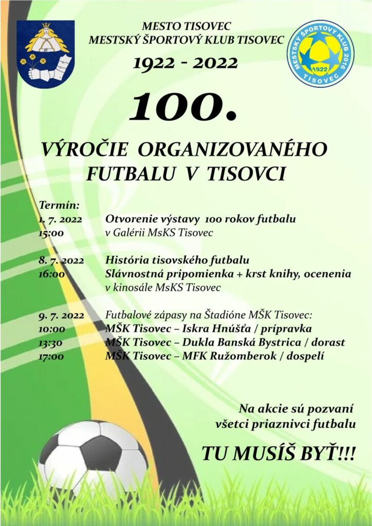 Podobne ako v Jesenskom, aj v Tisovci sa bude oslavovať 100. výročie futbalu. Oslavy už začali počas Dní mesta, kedy otvorili výstavu v Galérii Mestského kultúrneho strediska (MsKS).