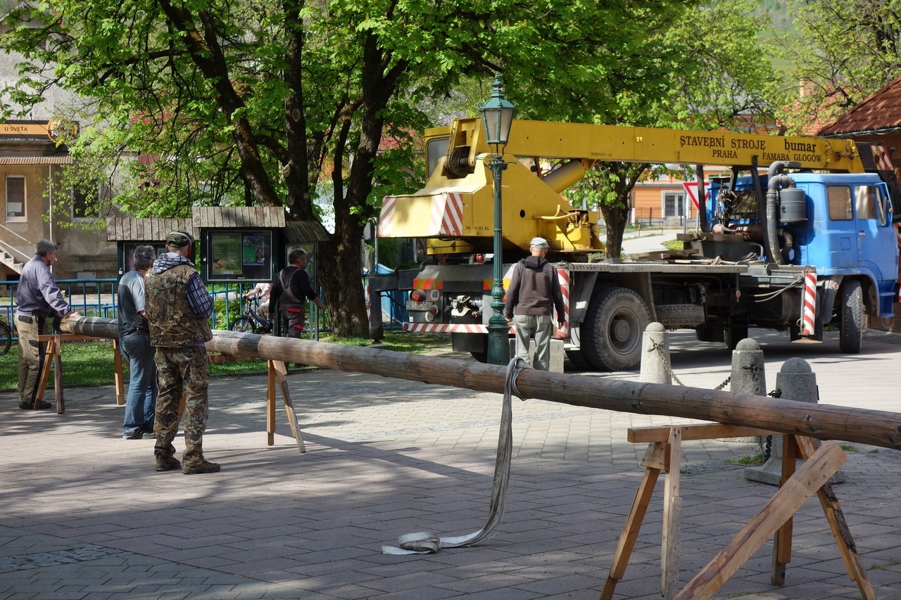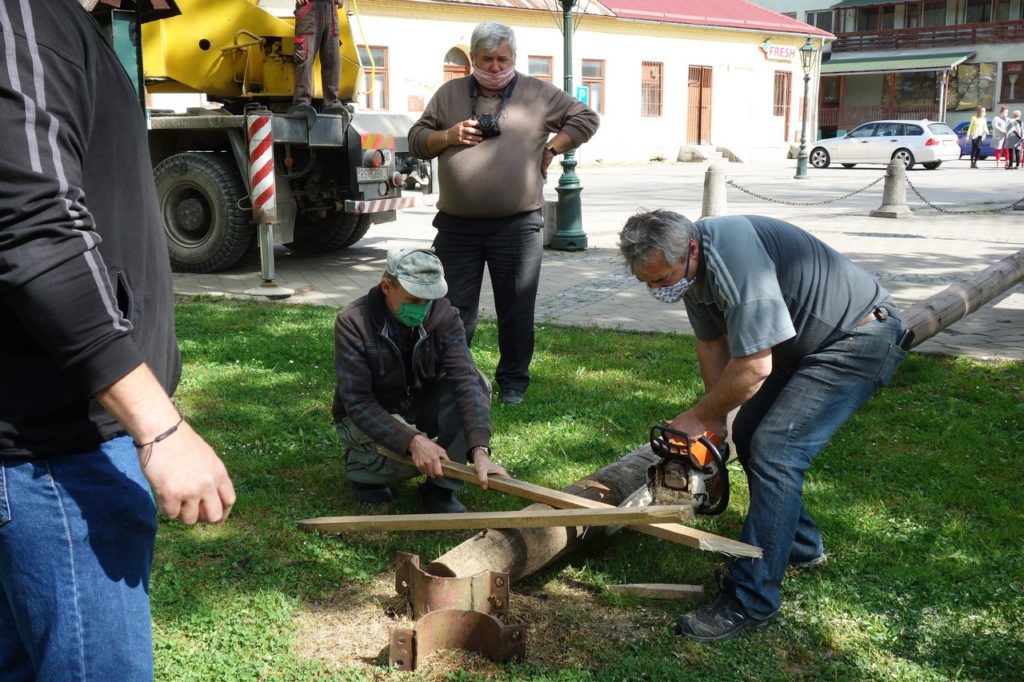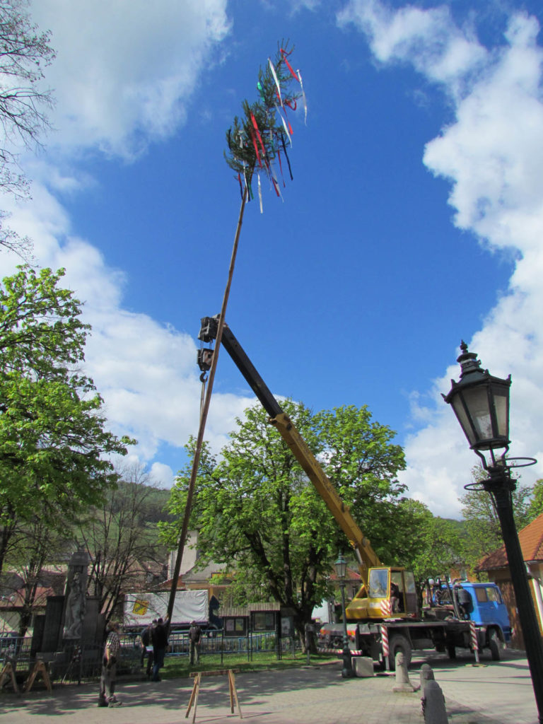 Folkloristi FS Vepor stavajú máje zhruba od 90-teho roku, dovtedy ich stavali lesníci. Najprv doviezli smrek na námestie, očistili a ozdobili ho. "Lenže zistili sme, že keď ide zo stromu miazga, tak je klzký, čo robí problém pri jeho postupnom dvíhaní prekríženými podperami," poznamenal Zvara, podľa ktorého vystavený smrek má dva týždne až mesiac. Pri ručnom stavaní mája takto roky postupovali, a keďže folkloristov bolo vždy veľa, všetci priložili ruku k dielu.