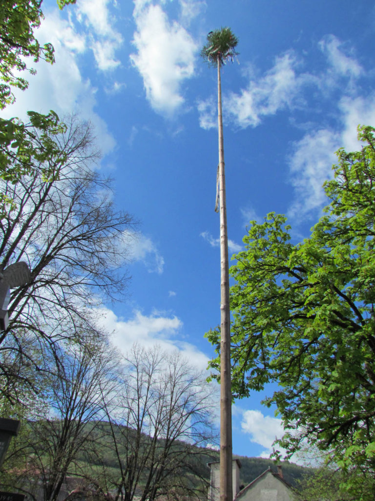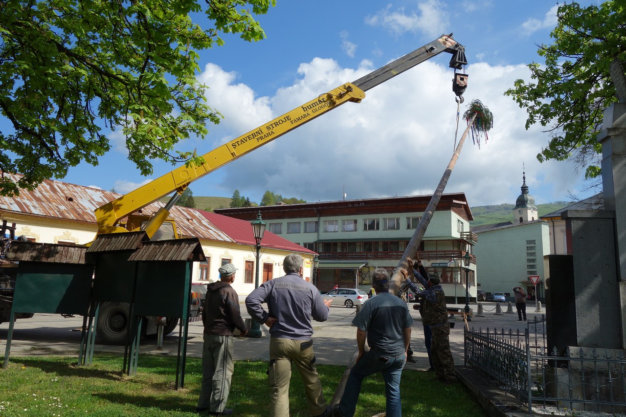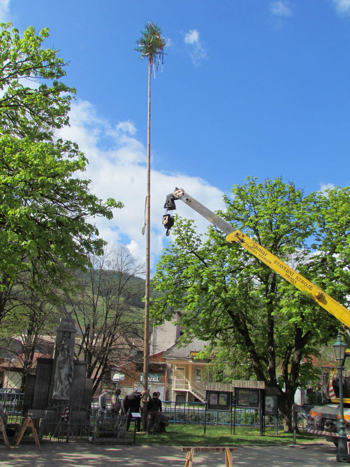 Námestie v mesiaci máj si bez majestátneho mája s farebnými stužkami vo vrcholci podľa starostky obce Zlaty Kaštanovej ani nevedia predstaviť. Ako spomenula, tento ďeň sa do kroniky obce zapíše tým, že po prvý krát stavali mája žeriavom a nie tradične ručne, bez divákov a bez tradičnej muziky a guľášu. Šťastie vidieť technicky náročný, a pri malej nepozornosti aj nebezpečný, akt stavania mája malo tento rok vzhľadom na opatrenia pre koronavírus len pár náhodne okoloidúcich ľudí.