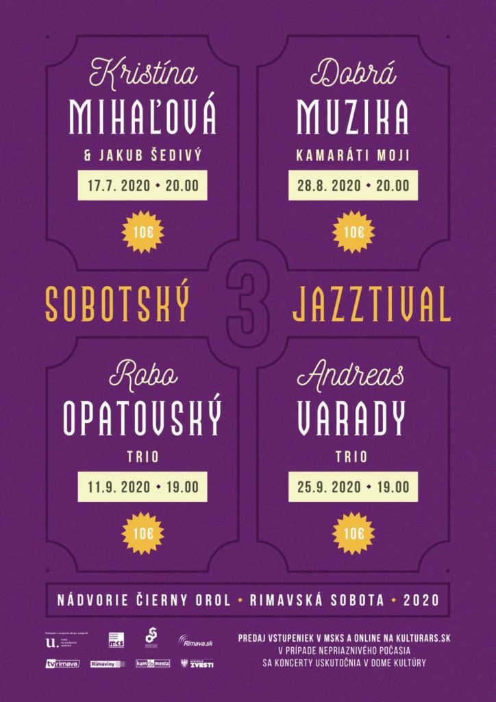 3. ročník Sobotského jazztivalu - festivalu kvalitnej hudby v Rimavskej Sobote organizuje Mestské kultúrne stredisko v spolupráci so SOŠOS. Podujatie z verejných zdrojov podporil Fond na podporu umenia, ktorý je hlavným partnerom podujatia.