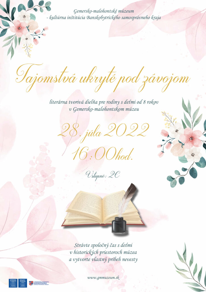 Súčasťou výstavy je aj literárna tvorivá dielňa Tajomstvá ukryté pod závojom, ktorá sa koná vo štvrtok 28. júla a 25. augusta 2022 o 16.00 hod. Určená je rodinám s deťmi od 8 rokov. Vstupné je 2 eurá. Témou literárnej tvorivej dielne je svadba, svadobný odev a príbehy s nimi spojené.
