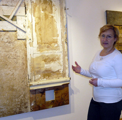 „Jeho obrazy, ktoré už nie sú maľbou ani reliéfom, ale ide o tzv. asambláž, sú zložené z určitých materiálov – či už sú to omietky, rôzne predmety, staré nábytky, ich detaily a časti,“ priblížila diela maďarského autora Garlátyová. „Prvkami vytiahnutými z minulého sveta autor vlastne skladá mozaiku pre súčasnosť, je to mapovanie alebo zaznamenávanie pamäte cez jeho prácu,“ uviedla.