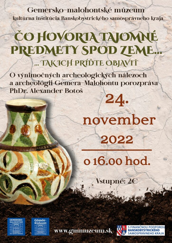 RIMAVSKÁ SOBOTA – Dnes (24. 11.) o 16.00 hod. sa v priestoroch Gemersko-malohontského múzea (GMM) uskutoční podujatie - Čo hovoria tajomné predmety spod zeme..., ktoré sa viaže k výstave „Najnovšie a zreštaurované zbierky Gemersko-malohontského múzea“.