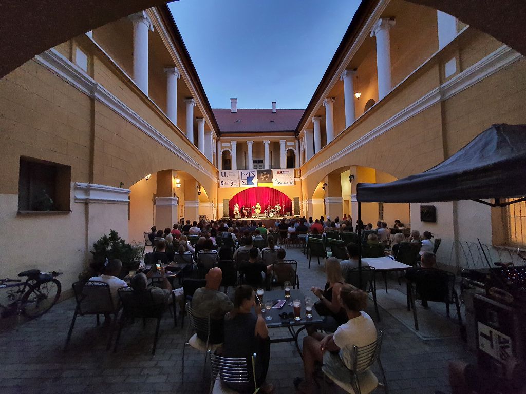 RIMAVSKÁ SOBOTA – Koncert Zdenky Prednej s jej autorským zoskupením DOLE&DOLE odštartoval v piatok (25. 6.) štvrtý ročník Sobotského jazztivalu v priestoroch átria budovy Čierny orol na Hlavnom námestí v R. Sobote. Fanúšikovia, ktorých bolo asi 130, priestor takmer úplne zaplnili a interpretku odmenili 'standing ovation'.