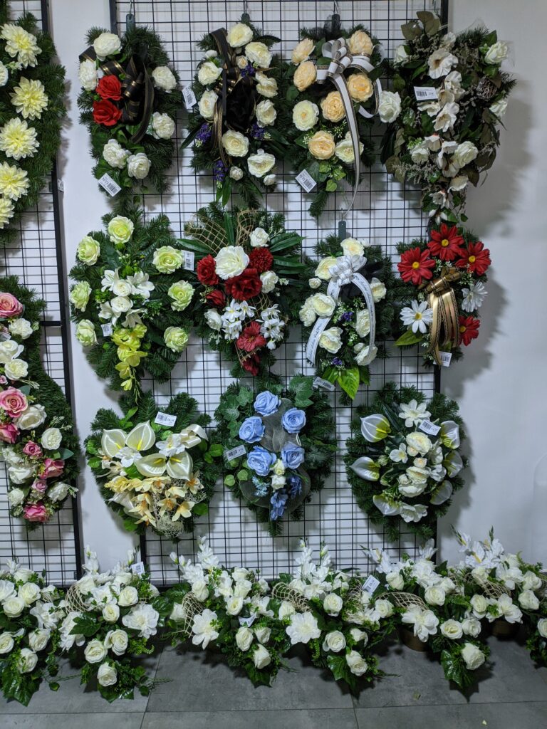 Kvetinárstvo ponúka aj najväčší výber smútočných vencov, momentálne ich je na predajni vyše 200. Veľkoobchodne ponúkajú tiež zdobené ikebany a vence z vlastnej výroby, ako aj základy na ne.