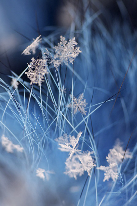 Padali v nej vločky na trávu a stali sa z nich hviezdne kvety, Mesiac sa vznášal a podobal zamrznutej bublinke a možno to bola aj planétka. A boli tam aj priesvitné kúsky ľadu, akési motýlie krídla pre anjela. Malo ich malé dievčatko, ktoré tam chodilo. Videla som ho zbierať tie snežné kvety a rozprávať sa so zamrznutou bublinkovou planétkou i osamelým Mesiacom. Ale nechápala som presne, prečo to robí. Pozeralo hore na tmavú oblohu a šepkalo:„Všetky hviezdičky už spadli na zem, len niektoré ostali visieť na pavučinkách ako čipkované dečky a pár ich bolo zakliatych v ľade. Zima ich spotrebovala veľmi veľa, aby zakryla a zmenila tento šedivý svet osamelých ľudí s ľadovými srdciami.“