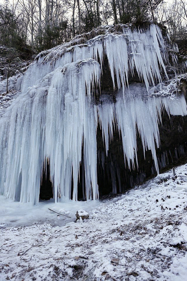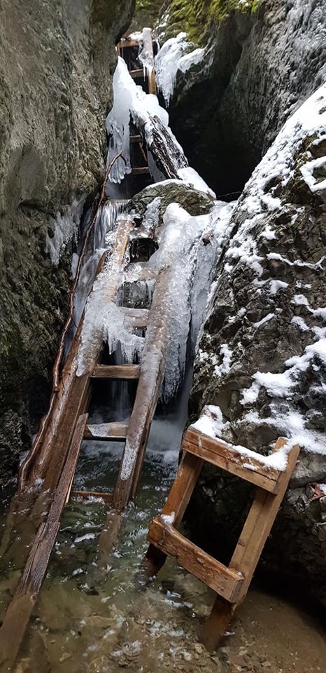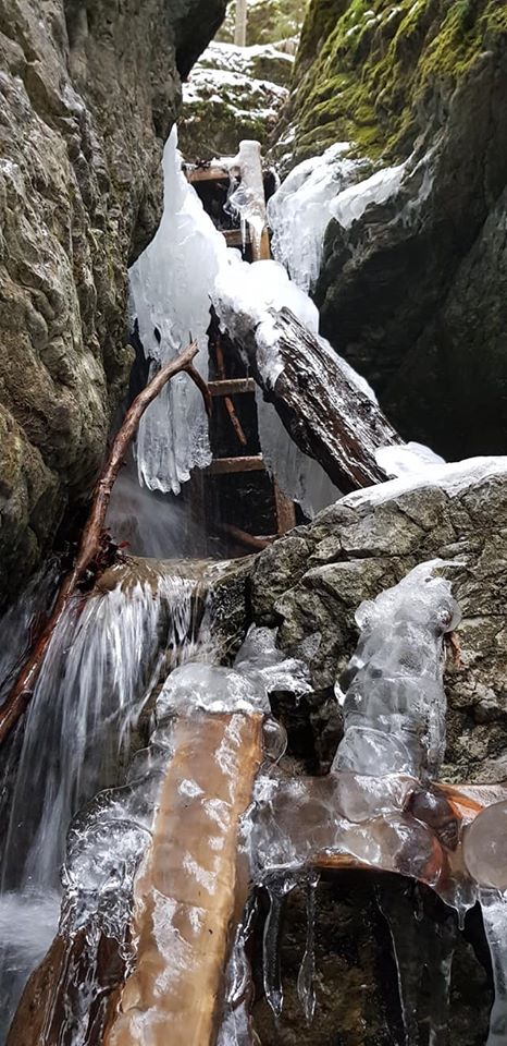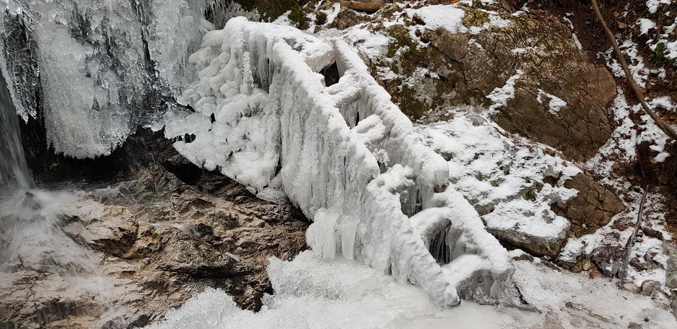 Zamrzol však už aj ľadopád, ktorý je známy cestujúcim medzi Tisovcom a Sedlom Zbojská. Ľudia ho zvyknú obdivovať z auta, prípadne zvyknú zastaviť aj na neďalekom parkovisku. Aktuálne fotky pre Rimava.sk poskytla známa fotografka zamrznutých bublín Daniela Rapavá z Rimavskej Soboty, ako aj Vojtech Benko z Brezna. Podľa jeho slov často chodí po okolí a nedávno bol aj v Čertovej doline, ktorá už zamrzla tiež a dosť sa tam aj šmýka takže je priechodná len s potrebnou výbavou "mačkami" na nohách. Do čertovej doliny sa dá dostať popod štátnu cestu, viadukt kadiaľ chodí vlak a cestou sa prechádza cez päť rebríkov.