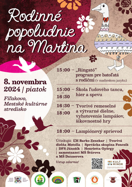 FIĽAKOVO – V piatok 8. novembra bude v Mestskom kultúrnom stredisku vo Fiľakove podujatie s názvom "Rodinné popoludnie na Martina". Program je zameraný na rodiny s deťmi a ponúka pestrú zmes kultúrnych, tvorivých a zábavných aktivít, ktoré podporujú tradície a komunitné stretnutia.
