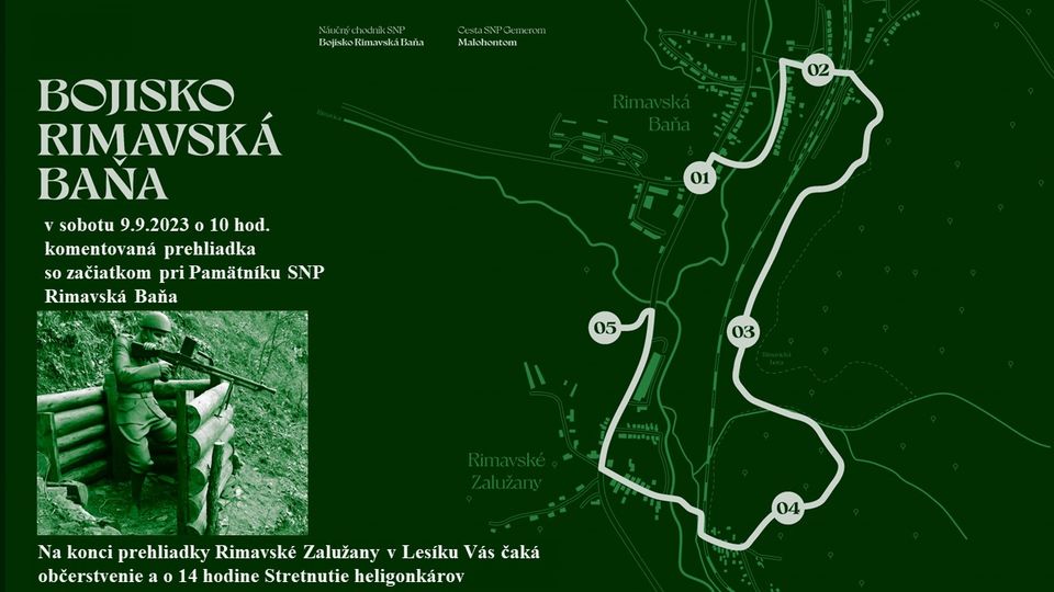 Stretnutie bude spojené aj s komentovanou prehliadkou Náučného chodníka SNP Bojisko Rimavská Baňa. "Stretneme sa pri Pamätníku SNP v Rimavskej Bani. Náučný chodník je súčasťou tematickej trasy Cesty SNP Gemerom-Malohontom. Náučný chodník vedie po lesnej ceste a chodníku na trase od Pamätníka SNP v Rimavskej Bani, okolo Komunitného centra, cez železničné priecestie k lesu a smerom na pozície na kóte Výsevná v Rimavských Zalužanoch a ku kote Hrb," vysvetľuje starosta.