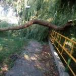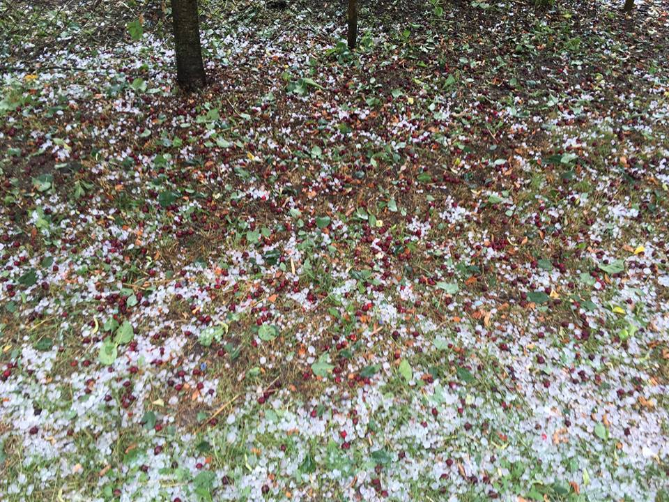 rsLetná búrka sprevádzaná silným dažďom, vetrom ale hlavne ľadovcom, ktorá sa prehnala v sobotu popoludní Rimavskou Sobotou zanechala po sebe drobné škody na majetku, úrode v záhradkách ako aj mnohé polámané stromy. Ako Rimava.sk informoval okresný riaditeľ Hasičského a záchranného zboru (HaZZ) v Rimavskej Sobote Marek Laššák, jednotky včera zasahovali pri dvoch spadnutých stromoch pri budove SPP a na Športovej ulici na parkovisku. V mestskej časti Tomašová zase spadol elektrický stĺp. Stromy však polámalo aj pri Rimave na Sídlisku, v Mestskej záhrade ako aj v centre. Kusy ľadu na niekoľko minút po druhej hodine popoludní pozastavili aj premávku na Košickej ceste. Podľa Františka Tótha padali v meste na Sobôtke rôzne veľkosti ľadovca. „Od malých kúskov až po vtáčie vajíčka,“ povedal a že v ich okolí to našťastie nebolo veľmi husté. Ku škodám na poľnohospodárskej pôde napríklad vo Valiciach sa zatiaľ vyjadriť nevedel. „Ešte sme tam neboli,“ povedal a dodal zároveň, že tento rok nejde o prvý ľadovec. „Ten u nás padal aj pred tromi týždňami, veľa úrody popadalo vtedy,“ poznamenal Tóth, ktorý je zároveň predsedom Gemerskej poľnohospodárskej a potravinárskej komory. Podľa jeho slov však ide už o kombináciu nepriazne počasia, keď na jar narobili škody mrazy, neskôr sucho a potom víchrica. „Je to dôsledok toho, že sa plody už slabo držali,“ dodal.