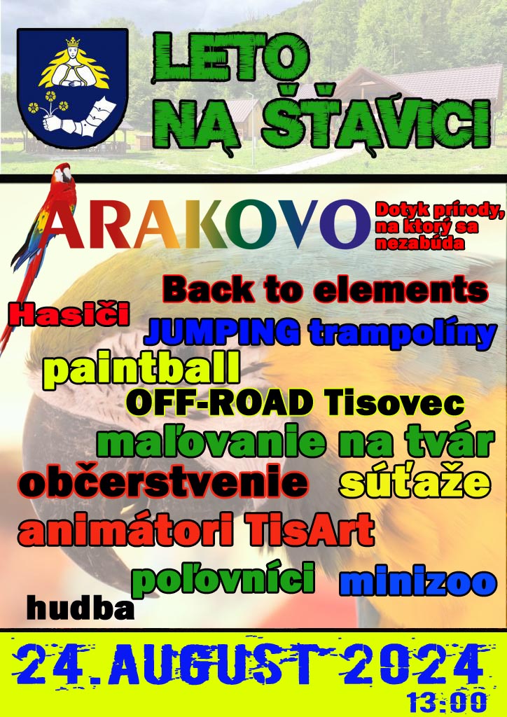 Medzi hlavné atrakcie patrí Arakovo, ktoré prinesie dotyk prírody, na ktorý sa nezabúda. Záujemcovia sa môžu tešiť na rôzne aktivity ako paintball, skákacie trampolíny s názvom JUMPING, off-road jazdy v Tisovci, maľovanie na tvár a súťaže pre deti aj dospelých. Pre tých najmenších bude pripravený program od animátorov z TisArt a minizoo, kde si deti môžu pozrieť a pohladkať rôzne zvieratká.