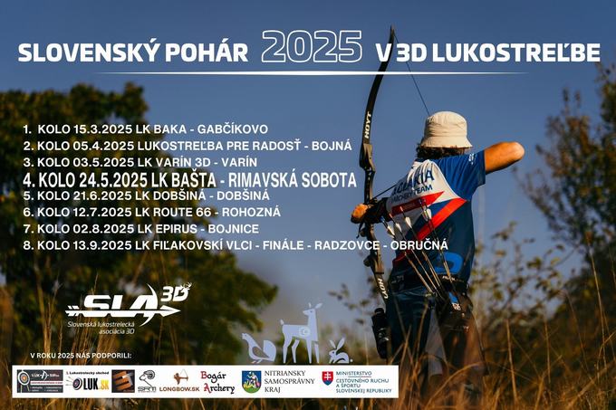 V sobotu 24. mája sa v Rimavskej Sobote konalo 4. kolo Slovenského pohára SLA 3D, ktoré organizačne zastrešil Lukostrelecký Klub Bašta. Hoci prípravy komplikovalo mimoriadne nepriaznivé počasie, klub postavil náročnú, ale pamätnú trať, ktorá preverila vytrvalosť i zručnosti súťažiacich.