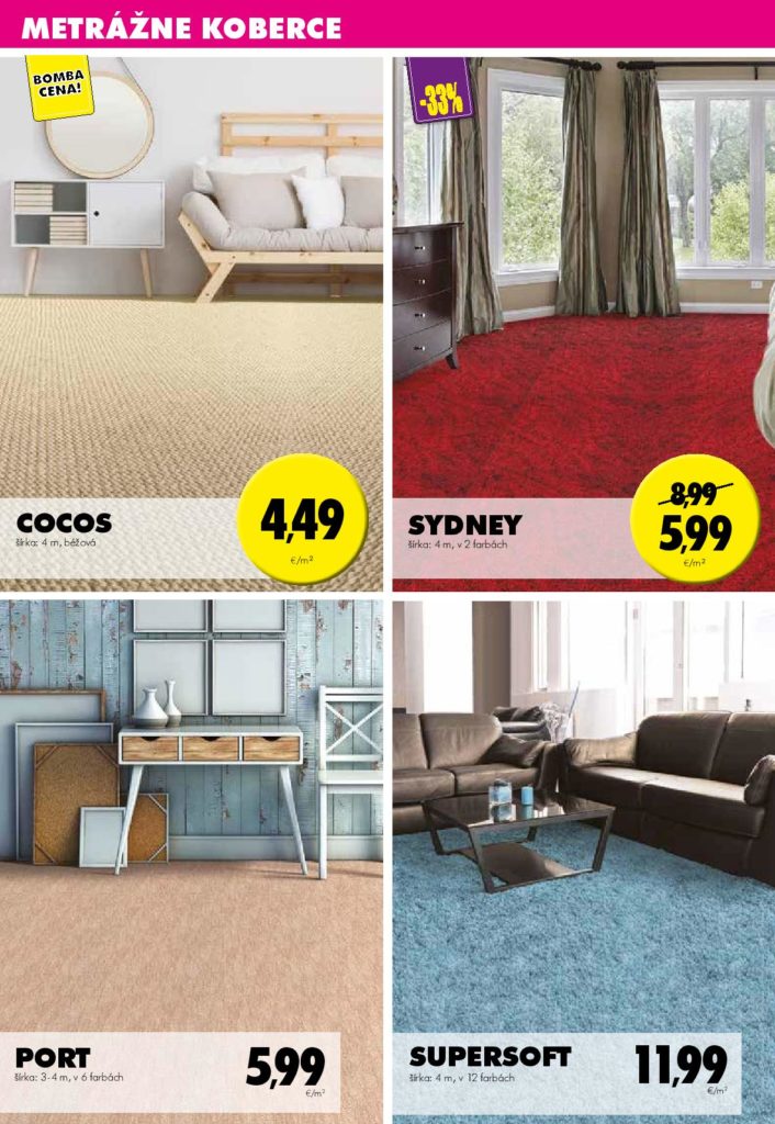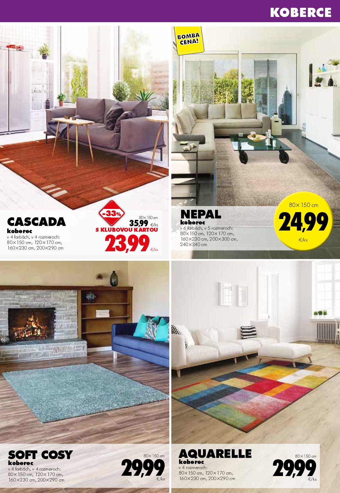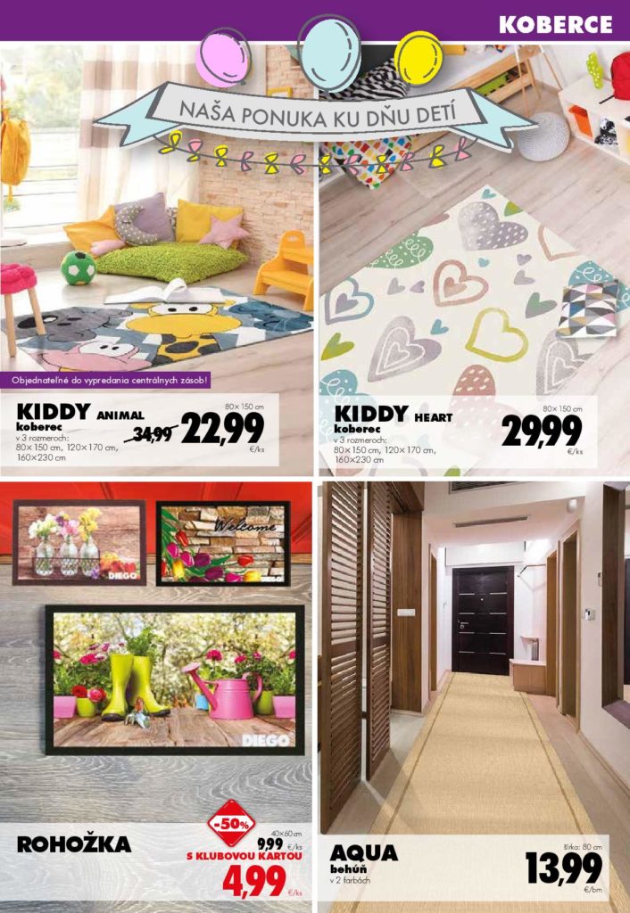 Aktuálny výber kobercov vám pokryje celý dom, od detskej izby cez obývačku až po terasu, ktorú napríklad môžete pokryť umelou trávou v rôznych odtieňoch zelenej. Okrem toho májová ponuka zaujme vodeodolnými podlahami, vinylovými podlahami v roliach, ale aj veľkým výberom záclon a tapiet.