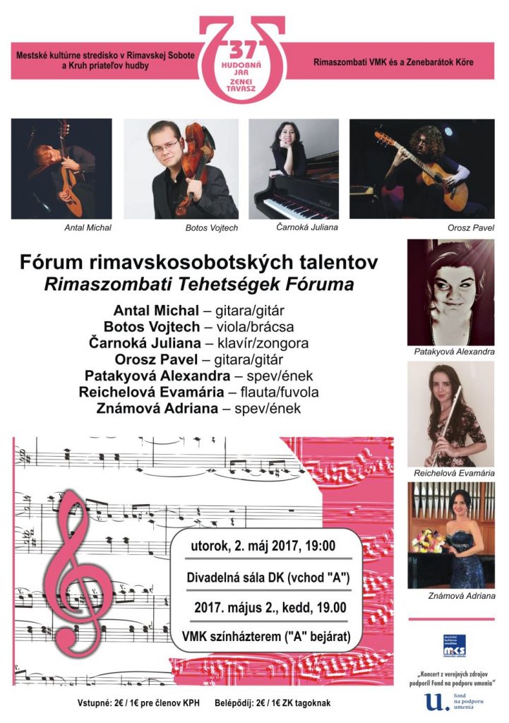 V utorok, 2. mája o 19.00 hod., pokračuje 37. ročník Hudobnej jari koncertom s názvom Fórum rimavskosobotských talentov.