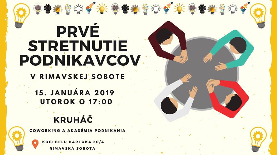 Máš nápad a rád by si ho zrealizoval, ale stále ťa niečo brzdí? V tom prípade by ti nemalo ujsť prvé stretnutie podnikavcov v Rimavskej Sobote. A kedy? V utorok, 15. januára o 17:00 hod. v novootvorenom coworkingu a akadémii podnikania, jedným slovom Kruháč, ktorý nájdeš na Ulici B. Bartóka 20/A.