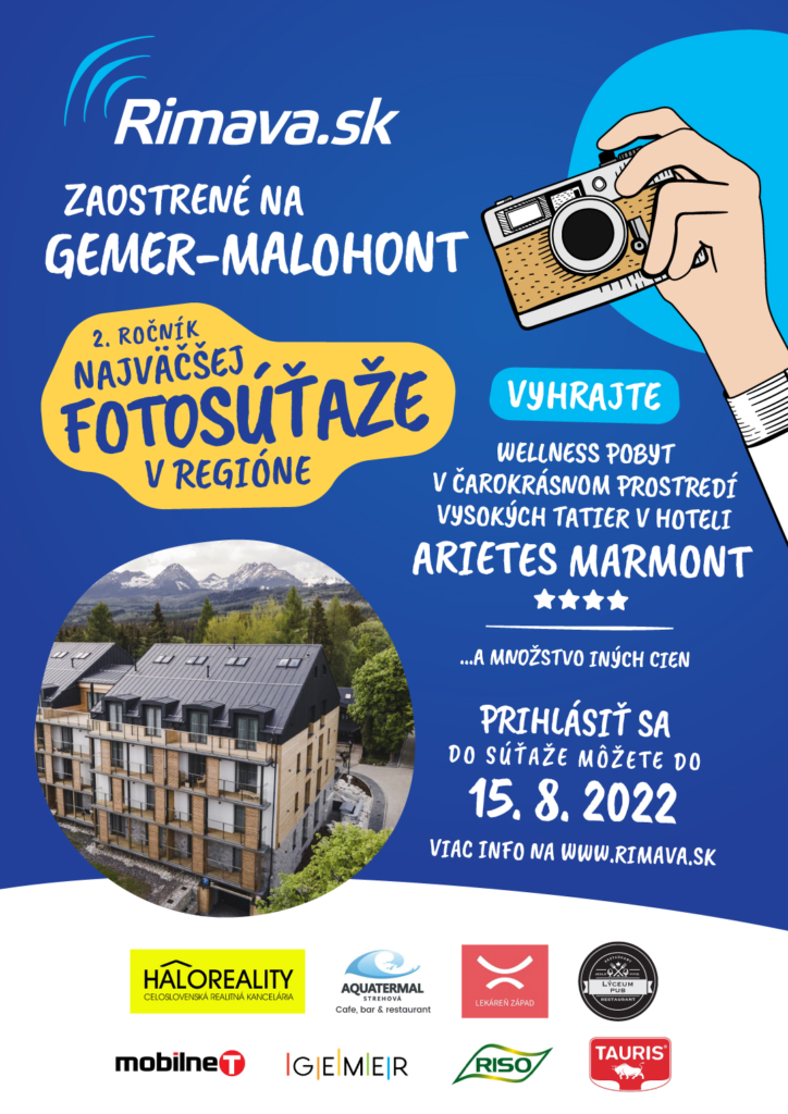 Čaro prírody, Kultúra mojimi očami, Mestá a obce našich okresov, Zaujímavosti a zábava - to sú štyri kategórie fotosúťaže Zaostrené na Gemer-Malohont. Máte vo svojom archíve fotku, ktorá by zožala úspech? Neváhajte a pošlite nám ju. Získať môžete aj hlavnú cenu súťaže. Je ňou víkendový wellness pobyt v čarokrásnom prostredí Vysokých Tatier v hoteli Arietes Marmont pre dve osoby, ktorý do našej fotosúťaže venovali HALO Reality Rimavská Sobota.